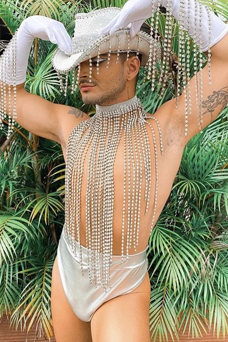 Fashion Silver Rhinestones Long Fringe Necklace Body Chain