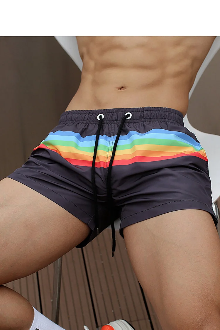 Men's Rainbow Striped Print Elasticity Sports Three Point Casual Shorts