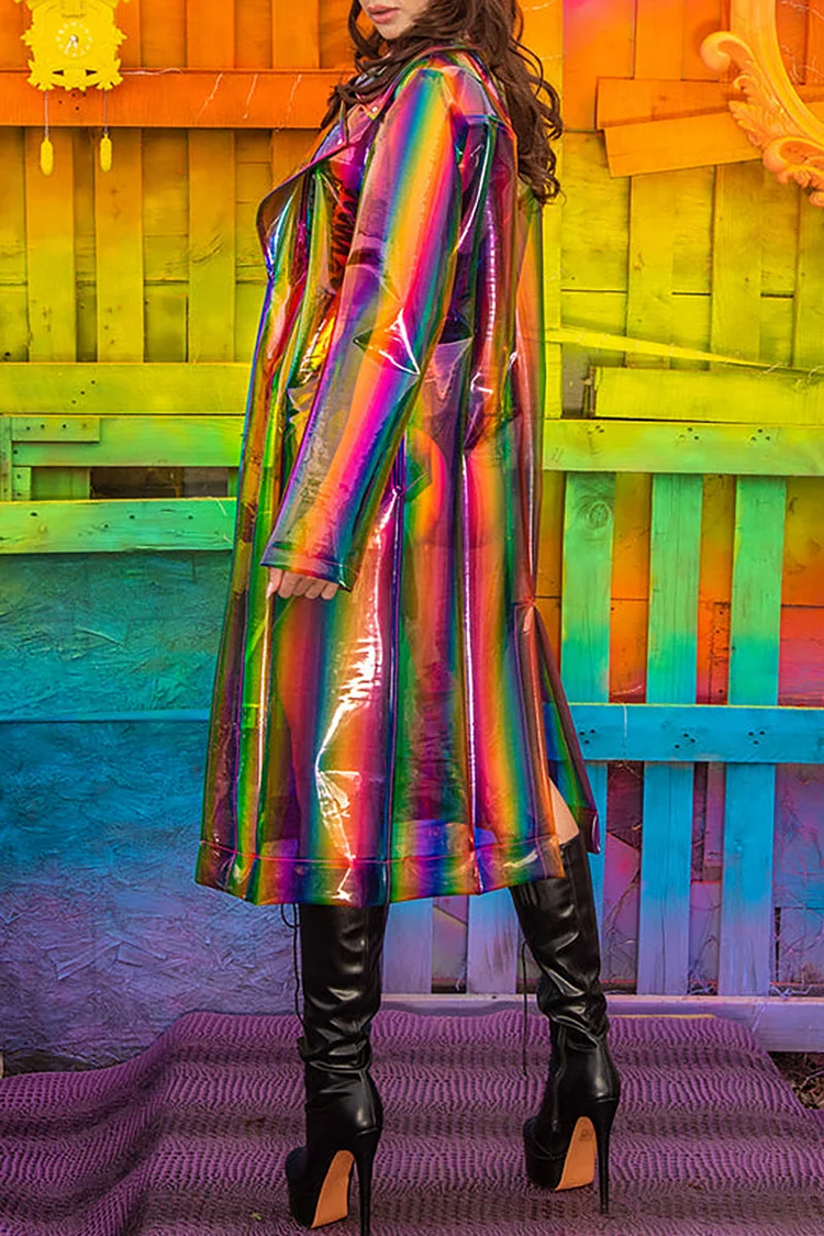 Unisex Reflective Iridescent Transparent Trench Coat