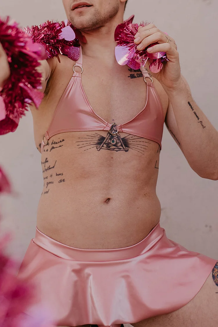 Satin Bra Mini Pleated Skirt Pink Two Piece Set [Pre-Order]