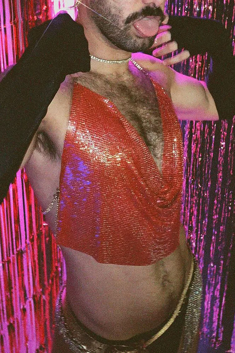Metal Sequins Festival Halter Crop Top