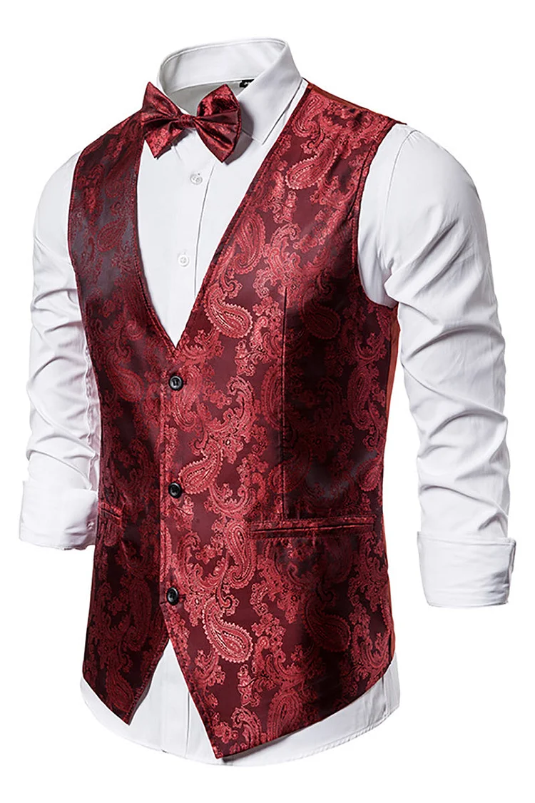 Men's Satin Cashew Nut Printing Deep V-Neck Pocket Basics Vest