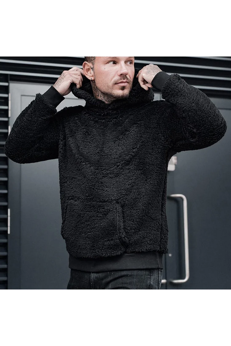 Fluffy Faux Fur Turtleneck Casual Hoodie With Pocket