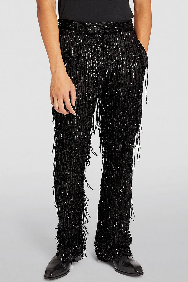 Sequin Fringe Hight Waist Wide-Leg Party Pants