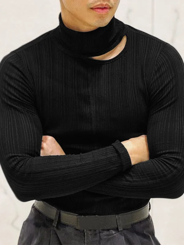 Mens Knit Cutout Turtleneck Long Sleeve T-Shirt