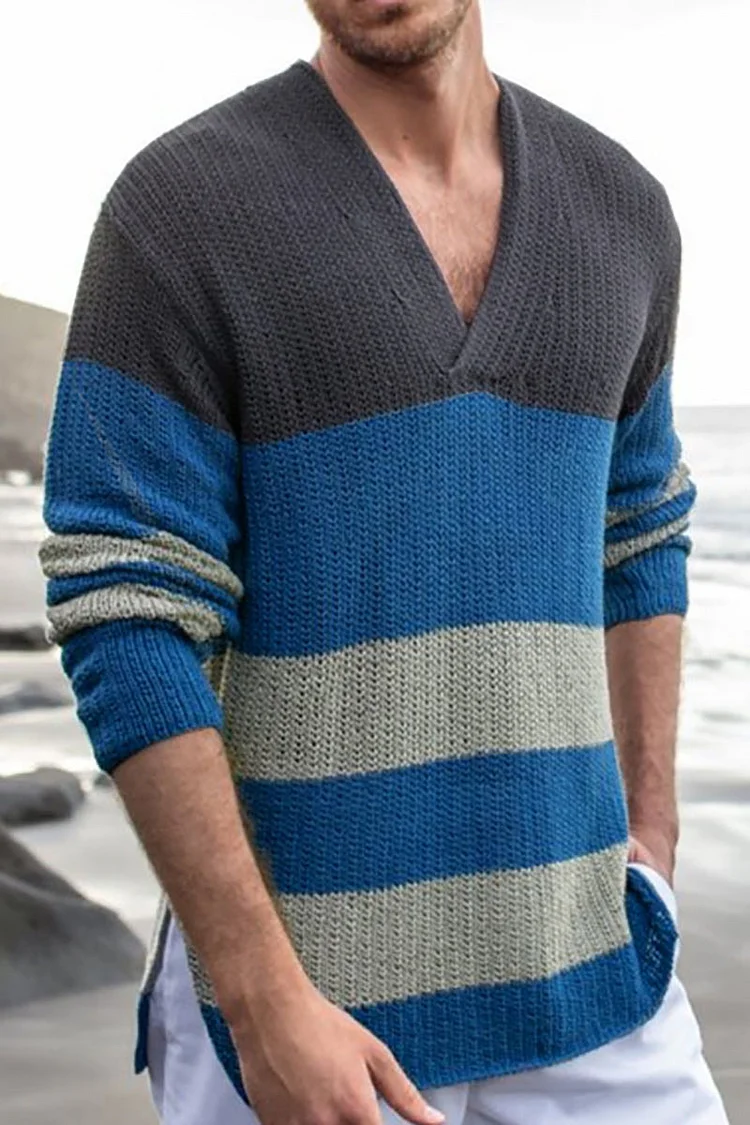 Colorblock Striped V Neck Long Sleeve Knit Top